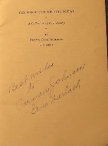Original autographed copy of " FOR WHOM THE WHISTLE BLOWS, A collection of G.I. Poetry"